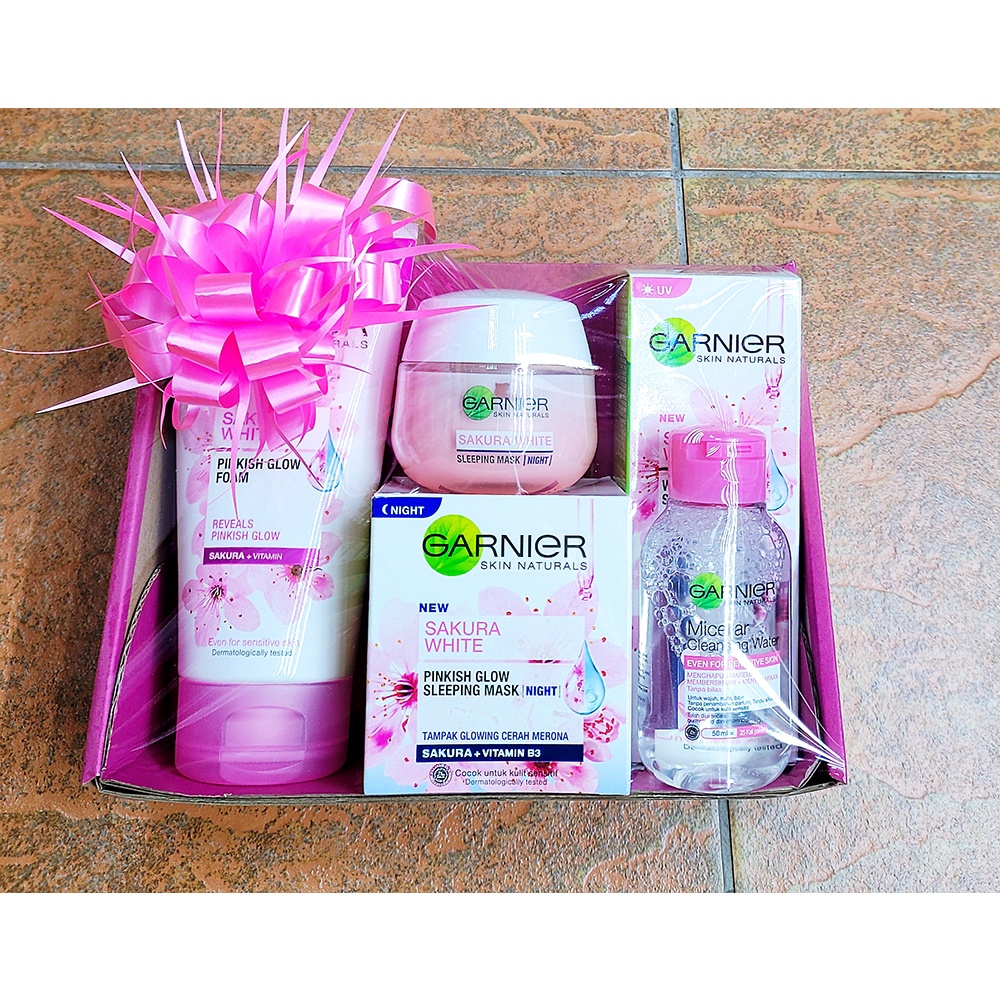 Yang pertama saya akan bahas adalah pembersihnya. GARNIER Sakura White Pinkish Glow Foam 9ml SACHETRp2600. Garnier sakura white SPF 21 Pinkish radiance cream wajah 50 ml.
